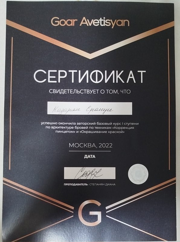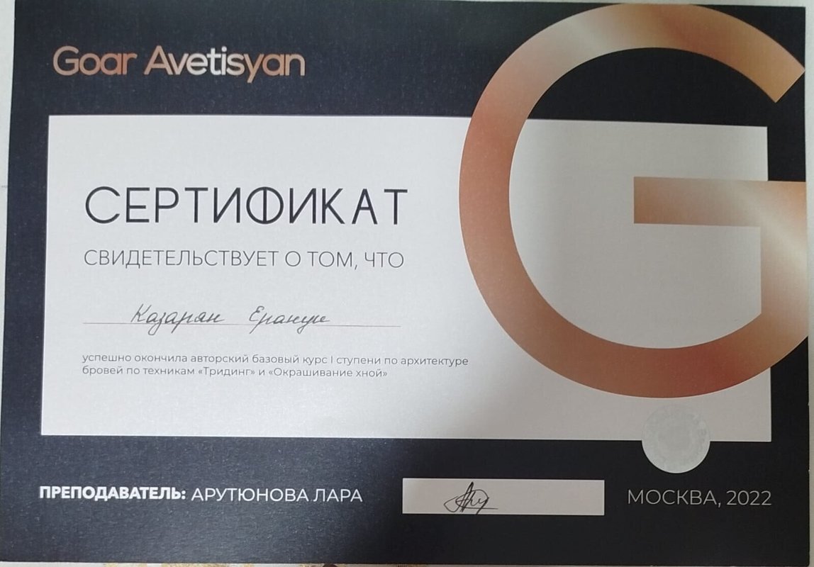 Казарян Ераник как бьюти-специалист постарается сделать так, чтобы вы стали ее постоянным клиентом. Она предлагает такие услуги, как коррекция нитью, коррекция бровей у мужчин и окрашивание бровей и ресниц.